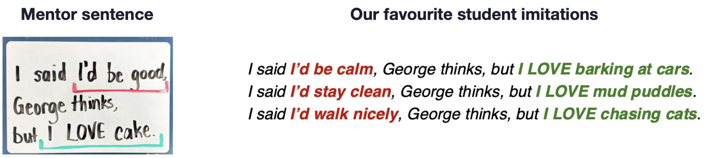 In our last newsletter, we explored how hearing strong sentences builds an “auditory loop” that supports fluent writing. This week, we dive into one of the most effective (and fun) ways to strengthen that connection: sentence imitating. It builds syntactic awareness, rhythm, and control, all through meaningful language play.